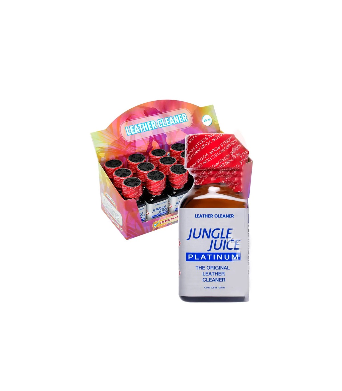 The original Jungle Juice Platinum big from the 70s is back and it's now stronger than ever. With its long-lasting effects and ability to produce intense orgasms, it has quickly become a favorite in the LGBTQ+ community and in many gay clubs and bars around the world. Those who have already tried it are thrilled with the power and quality of this product. It comes with a brand new red safety sleeve to ensure the quality and freshness of the contents. This sleeve is a sign of our commitment to customer safety and satisfaction. You can rest assured that you will receive a top-notch product when you choose the Jungle Juice Platinum Original.